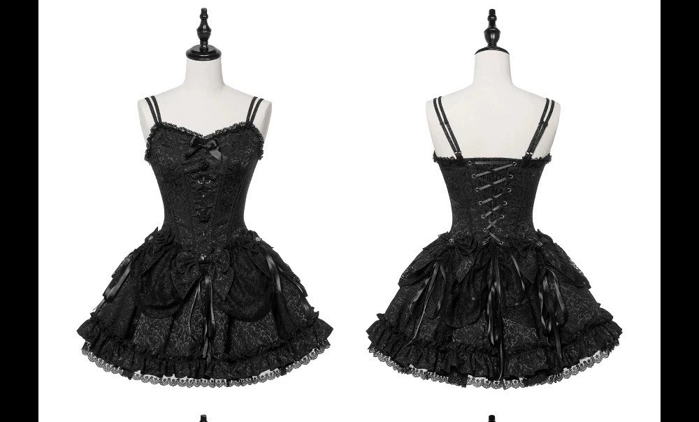 | 服装简介 | 以泪水为食的蝴蝶,像挥动着美丽翅翼的死神,沉默地亲吻悲伤者的眼角。当玉带凤蝶的神秘化作衣装,这条黑色哥特裙便成了暗夜的诗篇。内里的丝绒如蝶翼鳞粉般闪耀,燕尾的卷曲勾勒出灵动与不羁,似在诉说被封存与禁锢的灵魂。层叠蕾丝间,骸骨蝴蝶隐蔽的蛰伏,宛如女巫的低语,孤寂中透着悲悯。它是一件风格上回归繁复的古典设计服饰,更是暗黑美学的具象化表达,诠释浪漫与叛逆的共生。 |
