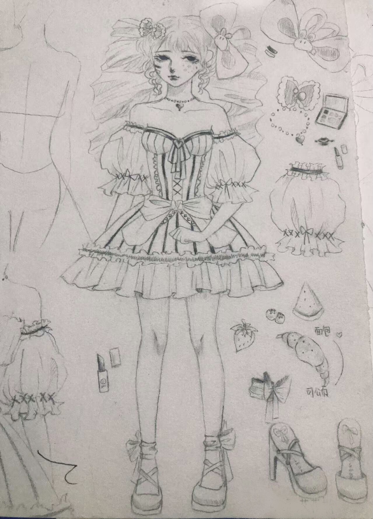 | 服装简介 | 设计灵感来自中世纪古堡里的巧克力可颂面包,用焦糖棕、奶油黄和浅咖色组成温暖的美拉德色系为主色调。蓬蓬裙像一层层巧克力酥皮,裙缘点缀糖果珠子和蕾丝,鱼骨收拢处悬垂着蝴蝶结。不应存于庄严的殿堂中、厚重的裙摆下,甜蜜被藏在足够掩人耳目的黑暗笼罩里。当钟楼敲响天使的赐福,唯有裙摆褶皱翻涌的黄油香能抵御古堡漫出的冷雾——让暗黑时代的森严禁锢在甜蜜中悄然融化。 |